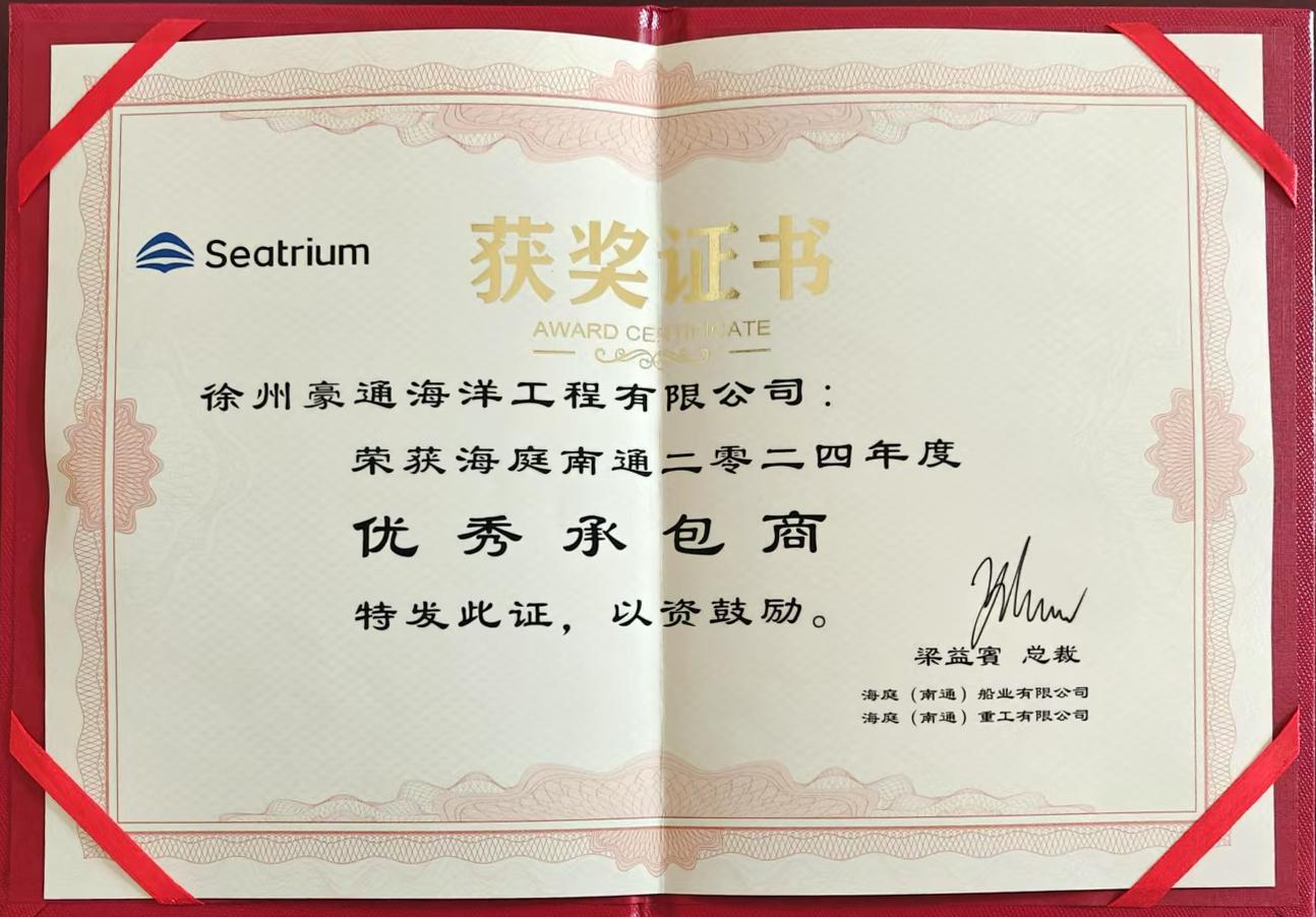 榮獲南通海庭2024年優(yōu)秀分包商稱號